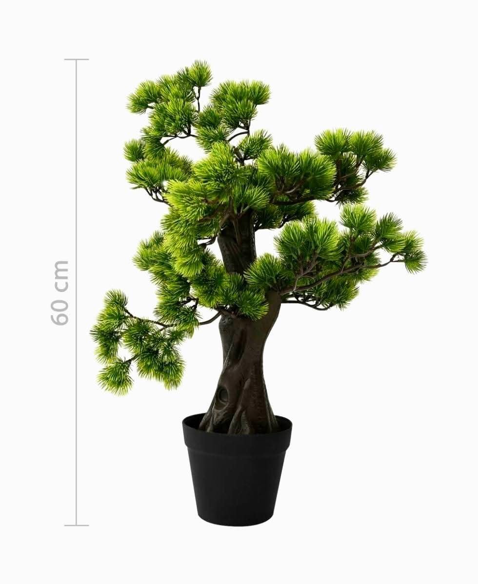 Pušinis bonsai yra 60 cm aukščio, todėl puikiai tiks jūsų namų ar biuro interjerui. Augalo lapai yra tobulai detalizuoti, todėl atrodo sodriai ir tikroviškai, be to, augalas niekada nenuvysta. Šis dekoratyvinis dirbtinis augalas idealiai tinka tiems, kurie nori turėti augalų savo namuose, bet neturi laiko jais rūpintis. Be to, lapai šiek tiek skiriasi spalva, kad atrodytų autentiškai. Šis dirbtinis augalas leis pajusti gamtos artumą.